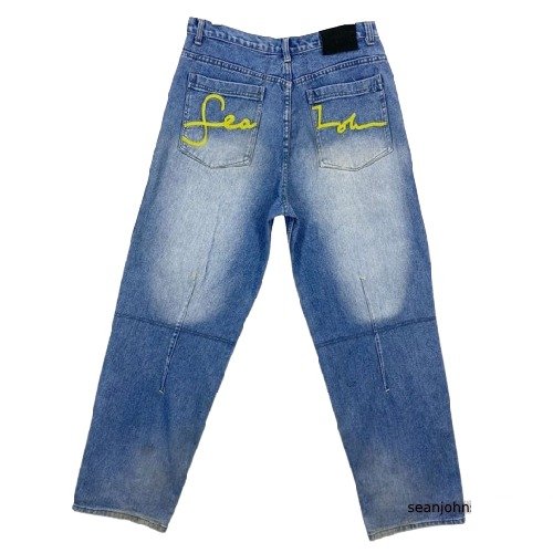 The dark denim tone delivers a bold and versatile look. The relaxed fit allows free movement every day. Durable stitching ensures strength and lasting performance. The yellow script on back pocket adds unique brand detail. Sean John Jeans for Men with Yellow Script bring modern street style to everyday wear. Visit our new stock of sean john jeans.This design creates a striking contrast with dark denim. Classic straight leg cut pairs with sneakers easily. The jeans hold their shape after many washes. Breathable fabric keeps the body cool during long use. The script detail highlights the identity of Sean John. The jeans reflect confidence and timeless appeal. A versatile choice for different casual occasions. Everyday wear becomes stylish and functional with these jeans.